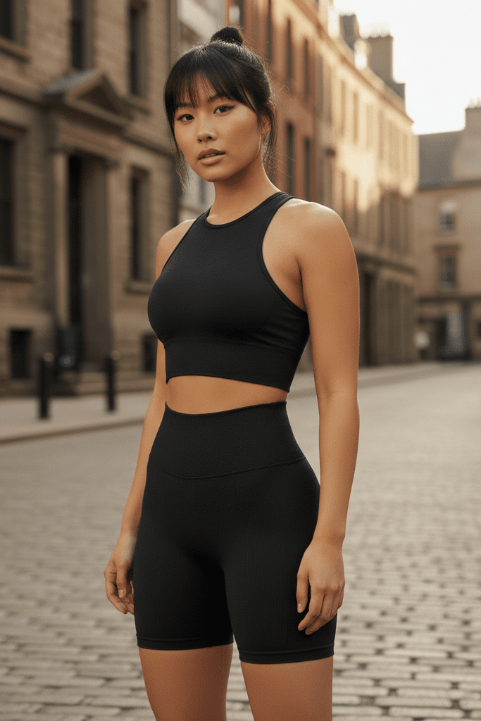 La brassière offre un soutien confortable, tandis que le short apporte une sensation de liberté et d’aisance, du matin au soir.